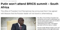 据塔斯社、今日俄罗斯电视台(RT)网站19日报道,南非总统拉马福萨的办公室发表声明称,俄罗斯总统普京不会出席下个月在南非约翰内斯堡举行的金砖国家峰会。声明还称,普京不…… ...